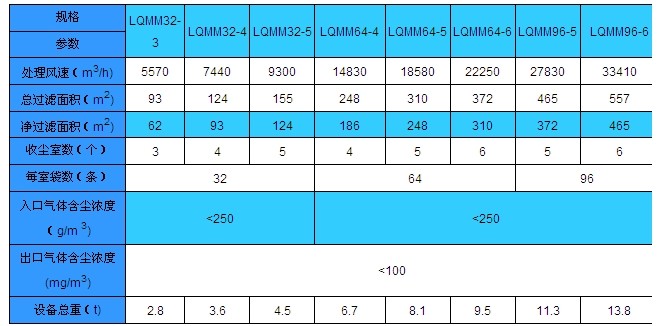 氣箱脈沖袋式除塵器LQMM型煤磨專用氣箱脈沖袋式除塵器技術參數(shù)表